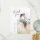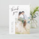 Tarjeta de agradecimiento de boda moderna y simple a 2 caras con un marco de arco blanco y un texto que dice "gracias" en una hermosa tipografía script. El mensaje predeterminado en la parte posterior es editable. Se puede agregar una segunda imagen cuadrada en la parte posterior de la tarjeta.