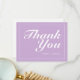 Bonito, moderna, minimalista y de moda boda gracias tarjeta con un suave fondo púrpura pastel (Pantone's 2022 color pick "Orchid Bloom") con bloques de texto de personalizable blanco en fuentes modernas