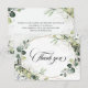 La tarjeta de agradecimiento de boda moderna y elegante de primavera / mediados de verano presenta un ramo de vegetación suave de acuarela, hojas verdes exuberantes / hojas botánicas / eucalipto / suculentas y marco geométrico dorado. Por favor, busque más diseños y variaciones coincidentes en mi tienda "blissweddingpaperie". Y no dude en contactarme para una mayor personalización o artículos coincidentes.
