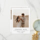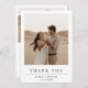 Esta tarjeta de agradecimiento de Boho Modern Boda 2 Photo Card presenta un romántico entorno al aire libre con la pareja abrazada en un desierto al frente, y un sereno paisaje de puesta de sol al fondo.