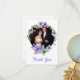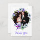 boda bonito gracias tarjeta plana hecha en blanco, con una corona floral colorida enmarcando la foto de su boda. Gracias, en texto de escritura de color lavanda, y el texto, en la parte trasera, está listo para personalizar para leer lo que quieras. Hay productos que coinciden.