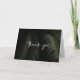 Tarjeta de agradecimiento plegada de Moody Tropics. Imagen de fondo de fotografía de frondas de palmera tropicales oscuras con imagen de tipografía blanca de "gracias" con estilo cortante.