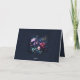 Una disposición floral de flores moradas oscuras en tonos de joyas enmarca esta impresionante tarjeta boda de agradecimiento doblada con un tema romántico oscuro. Un fondo marino oscuro y un arco negro rico son el fondo de la tipografía clásica y los toques de caligrafía elegante en un tono dorado (efecto digital, no oro real). Una elección perfecta para las parejas que aprecian el ambiente boda romántico oscuro y la estética de la joya. Una tarjeta de agradecimiento de boda oscuro y humorístico que presenta toques de color y ofrece una amplia gama de opciones de color para coincidir con un vestido boda negro. Elegante y romántico, se trata de una tarjeta de agradecimiento boda clásica moderna para los amantes de las pinturas florales al estilo de los maestros holandeses, bodas góticos, diseños de bodas oscuros, romance oscuro moreno y flores románticas oscuras en tonos joyas.