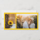 Envíe pensamientos de aprecio y gratitud con el encantador Country Sunflower Western Boda Gracias tarjeta de foto después de una casual pero elegante granja rural o un rancho estilo ducha de novia, fiesta de granero de compromiso o ceremonia de matrimonio y recepción. Esta informal y elegante moda rústica personalizado de agradecimiento a la tarjeta fotográfica presenta una pintoresca fotografía floral de botas de vaquero marrón, flor de girasol amarillo y madera de pino sobre satén blanco.