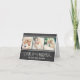 Plantilla de tarjeta de agradecimiento de boda estilo pizarra doblada "Amor y Gracias" que incluye tres fotos*, así como texto personalizado y un mensaje que se puede personalizar. Apariencia de tiza blanca manuscrita sobre una imagen de fondo de estilo pizarra negra texturizada.