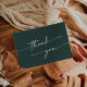 Esta tarjeta de agradecimiento de boda verde esmeralda de moda boho es perfecta para un boda minimalista. El bosque de cazadores negros y húmedos de diseño bohemio moderno presenta una caligrafía rústica sencilla con un estilo único y clásico. La parte posterior de la tarjeta de agradecimiento está en blanco para que puedas escribir a mano una nota reflexiva.