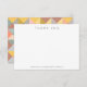Esta tarjeta de agradecimiento minimalista emana una elegancia discreta, con "Gracias" impreso en tipografía moderna y limpia sobre un fondo blanco prístino. Debajo, los nombres de la pareja añaden un toque personalizado. Voltea la tarjeta para revelar un patrón geométrico en tonos suaves de durazno, salvia, mostaza y rubor, creando un contraste elegante que hace que el diseño realmente se destaque. Perfecta para expresar gratitud por bodas, fiestas de regalos o cualquier ocasión, estas tarjetas son sofisticadas y versátiles, añadiendo un toque contemporáneo a tu mensaje sincero.
