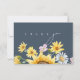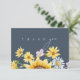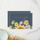 Celebra tu amor en medio de la vibrante belleza del verano con nuestro simple Boda floral Rústico de girasoles Royal Blue Opulence Gracias. Inspirada en el encanto rústico del campo, esta invitación se caracteriza por su exuberante vegetación y por las ráfagas de flores amarillas soleadas, que evocan la alegría de un prado bajo el sol sobre un llamativo fondo azul real. Con delicadas flores silvestres bailando alrededor de girasoles audaces, captura la esencia de un romance primaveral que florece en el amor eterno del verano, junto con el delicado detalle de las iniciales de la pareja, colocadas en un elegante monograma en la parte trasera. Fije el tono de su día especial con estas tarjetas, invitando a los invitados a unirse a una celebración del amor en medio del encanto de la abundancia de la naturaleza.