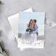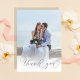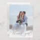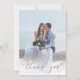 Comparte tu gratitud con estilo con esta tarjeta de agradecimiento boda que incluye una plantilla de fotos de personalizable que destaca tu momento fotográfico boda favorito. Diseñada con un guión elegante de caligrafía, tipografía limpia y un diseño minimalista sencillo, esta tarjeta ofrece espacio para un mensaje personalizado a sus huéspedes. Una manera atemporal y reflexiva de darte las gracias mientras muestras la belleza de tu día especial.