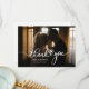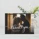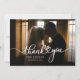 Una manera grandiosa y reflexiva de agradecer a tus amigos, familia y compañeros de trabajo que te honraron su presencia en tu día de boda con esta moderna foto gracias a las cartas con la mano de guion con "gracias" y un corazón de amor.