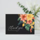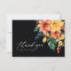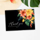 Moderno y elegante, esta única Tarjeta de Agradecimiento de Boda Tropical con Acuarela Botánica presenta un cautivador arte de acuarela floral que resalta contra un rico fondo negro. La lujosa combinación de flores de hibisco coloridas y hojas de palma exuberantes evoca la atmósfera de un paraíso exótico de playa, lo que la convierte en una opción ideal para parejas que celebraron su amor con una boda en un destino exótico. Expresa tu gratitud con estilo mientras envías una nota sincera adornada con estas hermosas flores, que capturan perfectamente el espíritu de tu día especial.
