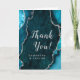 Tarjeta De Agradecimiento Boda verde azulado de mármol azul y plateado