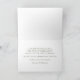 Elegante tarjeta plegada boda de agradecimiento con "Gracias" en un guión de caligrafía blanca en el frente con tu apellido mostrado debajo sobre un fondo verde oliva. El interior de la tarjeta de agradecimiento del boda muestra su mensaje de agradecimiento personalizado y nombres en letras verdes de oliva. Diseñar coordenadas con nuestra colección de bodas Modern Elegance.