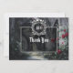 Una tarjeta de agradecimiento de boda gótica personalizada que presenta una escena floral de rosas de ruinas góticas. Diseñada por Thisisnotme©