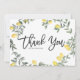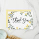Envía gracias a familiares y amigos por ser parte de tu evento con esta tarjeta plana de agradecimiento de limón. Cuenta con una corona de acuarela de limones y vegetación. Personaliza agregando nombres y mensajes. Esta tarjeta de agradecimiento de limón es perfecta para verano y bodas con tema de limón, baby showers, desayunos de novia, cumpleaños y mucho más.