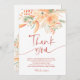 Muestre su sincero agradecimiento con nuestra tarjeta de agradecimiento para despedida de soltera, Boho Terracotta pintada a mano. Esta elegante tarjeta presenta un impresionante arreglo de flores de acuarela en tonos suaves de durazno, coral y verde, lo que le da un ambiente cálido y acogedor. Las delicadas flores enmarcan hermosamente la parte superior de la tarjeta, agregando un toque de encanto artístico y elegancia bohemia. El sentido mensaje de "Gracias" se muestra de manera prominente en una fuente de letra estilizada, agregando un toque de sofisticación y calidez. La combinación de tipografía elegante y elementos florales boho hace que esta tarjeta sea perfecta para agradecer a los invitados después de una despedida de soltera. Ideal para transmitir un sincero agradecimiento, esta tarjeta captura la belleza y la alegría de su día especial, lo que la convierte en un recuerdo memorable para
