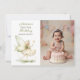 After your little one’s magical milestone send out thanks with this whimsical fairy first thank you card. Adorned with soft watercolor sweet fairy standing by an old big tree. Details of stars and the moon creates a dreamy enchanted forest vibe. With elegant fonts, a sage green and ivory palette, a truly charming and magical celebration. Add your own favorite photo to the back.