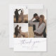 Esta tarjeta de agradecimiento de boda púrpura polvorienta moda boho es perfecta para un boda minimalista. El diseño bohemio moderno y liviano de lavanda presenta una caligrafía rústica sencilla con un estilo único y clásico. Personalice la tarjeta con tres fotos de su día de boda, sus nombres y fecha de boda. Borra el texto de ejemplo en la parte posterior de la tarjeta para que puedas escribir a mano una nota reflexiva a cada invitado, o hacer que se imprima un mensaje.
