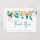 Boho Turquesa y Floral Dorado Acuarela Tarjeta de Agradecimiento Personalizada Plana