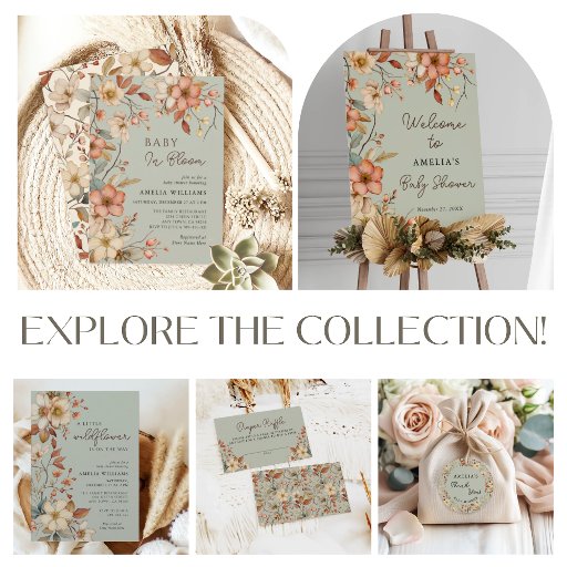 Presentamos la colección de Baby Shower de marfil de Boho Fall Wildflowers, una deliciosa mezcla de calidez y capricho. Este encantador diseño cuenta con flores silvestres blandas enmarcadas en un acogedor arco de terracota y marfil, lo que crea el ambiente perfecto para celebrar la llegada de una pequeña nueva. Bienvenidos a sus seres queridos en una sincera celebración bohemia que capta la alegría y la anticipación de este día especial con un toque de encanto otoñal.