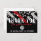 Este diseño cuenta con una bandera de bombero con rayas blancas y negras y una delgada franja de línea roja. Esta tarjeta de agradecimiento es grandiosa por mostrar aprecio y agradecer a un bombero, teniente, capitán o jefe por su servicio.
