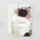 Tarjeta De Agradecimiento bonito de ciruela de burdeos y flores rosadas