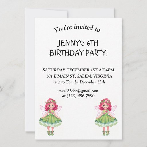 Exclusivamente de design4days, nuestro hadas de primavera de bonito en color rosa y verde chica fiesta de cumpleaños carta de agradecimiento.