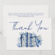 “Thank You!” is displayed along the top in a large, flowing handwritten script, serving as a warm and heartfelt focal point. Below, a watercolor stack of blue and white books is centered, accented with delicate blue chinoiserie and French toile-inspired floral patterns, along with coordinating blue and white flowers spilling out for a refined, storybook-inspired feel.