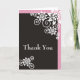 Diseñador Gracias Tarjetas para expresar su aprecio de forma elegante.Las flores blancas en un fondo negro con un borde rosado añaden un elemento atractivo a las Tarjetas de agradecimiento de su Diseñador.