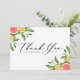 Envía gracias con esta tarjeta de agradecimiento cítrica. Cuenta con ilustraciones de acuarela de pomelos, naranjas, flores y vegetación. Personaliza añadiendo tu nombre y mensaje. Esta tarjeta de agradecimiento es perfecta para bodas de verano, baby showers, despedidas de soltera y mucho más.