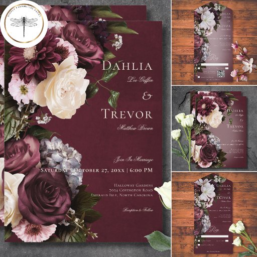 Dark Elegant Burgundy & Cream Floral WeddingDiseñado por Kathe Santillo