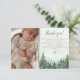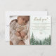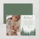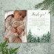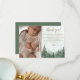Una tarjeta de agradecimiento de baño de bebé de bosque de pinos rústicos y elegantes que se puede personalizar con una foto especial de la llegada de tu pequeño. Diseñada por Thisisnotme©
