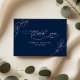 These thank you cards feature a deep navy blue background with clean white text. Fine botanical eucalyptus leaves appear in simple line art, creating a fresh and elegant look. The design offers a modern and refined style that matches any navy blue and greenery wedding theme. It provides a calm and graceful way to thank your guests.
