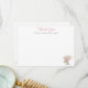 Tarjeta plana de agradecimiento de despedida de soltera bonita y caprichosa con una ilustración de acuarela de botas de lluvia blancas llenas de peonías rosadas, cubiertas con un paraguas blanco. "Gracias" está en fuente cursiva rosa. Personaliza con el nombre de casada futuro.