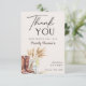 Esta tarjeta de agradecimiento para la despedida de soltera Boots and Bubbly Boho es la forma perfecta de mostrar aprecio después de una divertida despedida de soltera con temática campestre. Con botas de vaquero estilo acuarela, copas de champán y hierba de pampas, captura el encanto de una celebración rústica y occidental. El tema de botas y burbujas añade un toque juguetón, lo que la hace ideal para cualquier novia vaquera. Su diseño suave y bohemio emana calidez y elegancia, perfecto para agradecer a los invitados con estilo. Completa tu despedida de soltera con estas tarjetas de agradecimiento sinceras: ¡ordena hoy mismo!