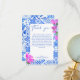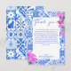 Tarjeta de agradecimiento de boda/fiesta/ducha de novia elegante con escritura moderna y bougainvillea de baldosas azules.