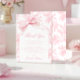 Abran la elegancia atemporal con nuestra adorable tarjeta de agradecimiento a la bebé de temática francesa, mostrando una encantadora cinta de arco rosado contra un patrón floral de inspiración vintage y un arco de boho. Esta sofisticada tarjeta es la manera perfecta de expresar tu gratitud con un toque de estilo clásico, lo que lo convierte en un complemento ideal para tu elegante y refinada celebración de la ducha de bebé.