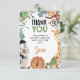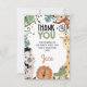 Boys Brown Green Born Two Be Wild 2nd Birthday Thank You Card Cute boys safari o comodines cumpleaños carta de agradecimiento por tener seis animales de la selva. La parte posterior de la tarjeta presenta un patrón de impresión de chita.
