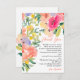 Tarjeta de agradecimiento de brillante boho jardín floral fiesta de despedida de soltera, con rosas de durazno pintadas a mano, flores rojas acuarela, eucalipto verde y follaje y otras flores lindas y bonitas del jardín con una fuente de letra moderna a pincel. ¡Un estallido de colores atrevidos y flores bonitas!