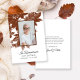 Agradece a sus invitados que recuerden a su ser querido después de su fallecimiento en su Celebración de la Vida Memorial con la tarjeta de nota de solidaridad del Servicio Funeral de Brown Fall Leaves. Este personalizado tributo a la muerte en madera, gracias, presenta una fotografía digital de cerca de la naturaleza de las hojas de arce coreanas marrón en el árbol con un fondo blanco. Personalízalo con una foto del fallecido, las fechas de nacimiento y muerte y tu mensaje personal al revés. Perfecto para un evento de septiembre, octubre o noviembre de otoño.
