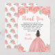 Tarjeta De Agradecimiento Brown Hair Princess Pink Floral Sweet Sixteen