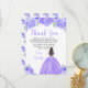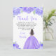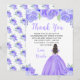 Tarjeta De Agradecimiento Brown Hair Princess Purple Floral Sweet Sixteen