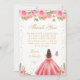 Esta elegante y glamurosa tarjeta de agradecimiento de dulces dieciséis presenta a una bella princesa con cabello oscuro y piel clara en un vestido de baile rosa. El texto combina la escritura a mano y las fuentes modernas sans serif para un aspecto clásico y sofisticado. Los arreglos florales, las mariposas y el confeti dorado crean la mezcla perfecta de rústico y chic.