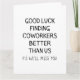 Buena suerte encontrando compañeros de trabajo mejor que nosotros las tarjetas de presentación