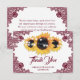 Tarjeta De Agradecimiento Burgundy Rustic Floral Lace Sunflower Wedding