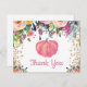 Tarjeta De Agradecimiento Calabaza de Otoño Floral Rosa Dorado Glitter Confe