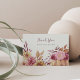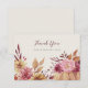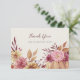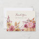 Enamórate de este hermoso diseño de tarjeta de agradecimiento rústico para celebraciones de boda de otoño, baby showers, fiestas de compromiso o cenas de ensayo. El diseño cálido y elegante presenta flores silvestres, follaje y una calabaza en suaves colores de otoño. Personaliza esta tarjeta de agradecimiento con tu elección de texto personalizado y agrega un mensaje manuscrito en el reverso.