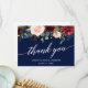 Tarjeta De Agradecimiento Caligrafía Burgundy Floral Azul Boda