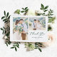 Envía tu gratitud a los invitados por ser parte de tu día especial con esta tarjeta de agradecimiento de collage de fotos de personalizable. Presenta una escritura caprichosa y una tipografía clásica. Personalizado añadiendo tus propios detalles y presentando tus fotos favoritas de bodas.