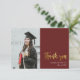 Tarjeta de agradecimiento por caligrafía dorada Red Modern Photo Graduation. Celebra tu fiesta de graduación con esta elegante y festiva tarjeta de agradecimiento de purpurina de oro con una hermosa caligrafía escrita a mano . Todos los textos están preorganizados para que puedas personalizarlos fácil y rápidamente con tus propios detalles.